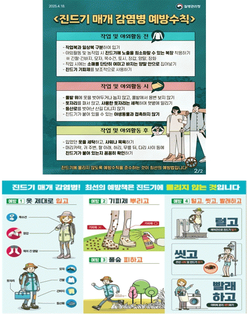 Ãß¼®Àº ¾ß¿ÜȰµ¿ÀÌ ¸¹Àº ½Ã±â·Î Áøµå±âÀÇ È°µ¿ ½Ã±â¿Í °ãÃÄ °¨¿° À§ÇèÀÌ Ä¿Áö´Â ¸¸Å, ¾ß¿Ü¿¡¼´Â ±ä¼Ò¸Å¿Í ±ä ¹ÙÁö¸¦ Âø¿ëÇØ ÇǺΠ³ëÃâÀ» ÁÙÀÌ°í ±âÇÇÁ¦¸¦ »ç¿ëÇϸç, ¹úÃÊ¡¤¼º¹¦ ÈÄ¿¡´Â »þ¿ö¿Í ÀÇ·ù ¼¼Å¹À» ÅëÇØ ¸ö¿¡ ºÙÀº Áøµå±â¸¦ Á¦°ÅÇÏ´Â µî ¿¹¹æ¼öÄ¢À» öÀúÈ÷ ÁöÄÑ¾ß ÇÑ´Ù.