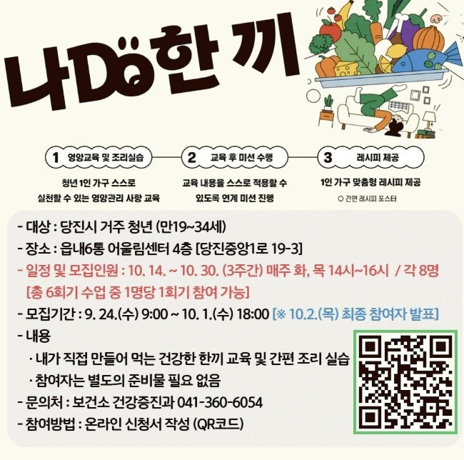 ƯÈ÷, ¸¸ 19¼¼ºÎÅÍ 34¼¼±îÁöÀÇ ´çÁø½Ã¿¡ °ÅÁÖÇϴ û³âÃþÀ» ´ë»óÀ¸·Î ¿µ¾ç°ü¸® ÇÁ·Î±×·¥¡®³ªDOÇѳ¢¡¯¸¦ 10¿ù 14ÀϺÎÅÍ 30ÀϱîÁö ÃÑ 6ȸ±â¿¡ °ÉÃÄ ¿î¿µÇÑ´Ù.