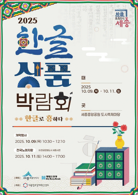 ¼¼Á¾Æ¯º°ÀÚÄ¡½Ã´Â ¿À´Â 9ÀϺÎÅÍ 11ÀϱîÁö ¼¼Á¾Áß¾Ó°ø¿ø µµ½ÃÃàÁ¦¸¶´ç¿¡¼ Á¦1ȸ ÇÑ±Û »óǰ ¹Ú¶÷ȸ ¡®Çѱ۷ΠÈïÇÏ´Ù¡¯¸¦ °³ÃÖÇÑ´Ù.