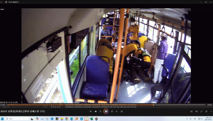 ½É ±â»ç´Â 13½Ã 06ºÐ°æ, ¿îÇà Áß ¹ö½º ³»¿¡¼ ÀÀ±ÞȯÀÚ¸¦ ¹ß°ßÇϰí Áï½Ã Â÷·®À» ¾ÈÀüÇÏ°Ô Á¤Â÷½Ã۰í 13½Ã 08ºÐ°æ ±Ý¼º¸é »ç°î¸®¿¡¼ 119¿¡ ½Å°íÇß´Ù. À̾î ȯÀÚÀÇ »óŸ¦ È®ÀÎÇÑ µÚ 13½Ã 11ºÐºÎÅÍ 13½Ã 25ºÐ±îÁö ¾à 14ºÐ°£ ½ÉÆó¼Ò»ý¼ú(CPR)À» ½Ç½ÃÇϸç ȯÀÚÀÇ ¼Ò»ýÀ» À§ÇØ ÃÖ¼±À» ´ÙÇß´Ù.
