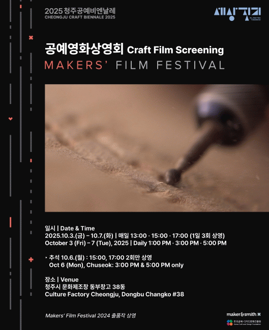 À̹ø »ó¿µÈ¸´Â Á¶Á÷À§¿Í Çѱ¹°ø¿¹¡¤µðÀÚÀι®ÈÁøÈï¿øÀÌ Çù·ÂÇÑ Àü½Ã¿¬°è ÇÁ·Î±×·¥À¸·Î, ¼È£ÁÖ ±â¹ÝÀÇ °ø¿¹ Àü¹® ´Üü ¡®¸ÞÀÌÄ¿ ¾Ø ½º¹Ì½º¡¯°¡ ÁÖÃÖÇÏ´Â °ø¿¹¿µÈÁ¦ ¡®¸ÞÀÌÄ¿½º Çʸ§ Æä½ºÆ¼¹ú(Makers¡¯ Film Festival)¡¯ÀÇ 2024³â ÃâǰÀÛÀ» ¸¸³¯ ¼ö ÀÖ´Â ±âȸ´Ù.