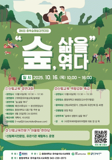 À̹ø ½£Çؼ³ °æ¿¬´ëȸ´Â ÃæºÏµµ°¡ ÁÖÃÖÇϰí, »ê¸²±³À°Àü¹®°¡ ¾ç¼º±â°ü(ÃæÃ»´ëÇб³ À¯¾Æ½£Áöµµ»ç±³À°¿ø, ÃæºÏ½£Çؼ³°¡Çùȸ, ½£È¯°æ±³À°¼¾ÅÍ)ÀÌ °øµ¿ ÁÖ°üÇØ µµ¹ÎµéÀÇ Âü¿©¿Í °ü½ÉÀ» À¯µµÇϰíÀÚ ¡®½£, »îÀ» ¿«´Ù¡¯¶ó´Â ÁÖÁ¦·Î ½£°ú »ç¶÷, Áö¿ªÀÌ ÇÔ²² ¾î¿ì·¯Áö´Â ½£ ¹®È ÃàÁ¦·Î ÆîÃÄÁø´Ù.