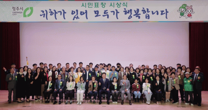 À̹ü¼® ûÁÖ½ÃÀåÀÌ °¨»çÀÇ ¶æÀ» ´ã¾Æ ¼ö»óÀڵ鿡°Ô °¢°¢ ǥâÆÐ, °ø·ÎÆÐ µîÀ» ¼ö¿©Çß´Ù.