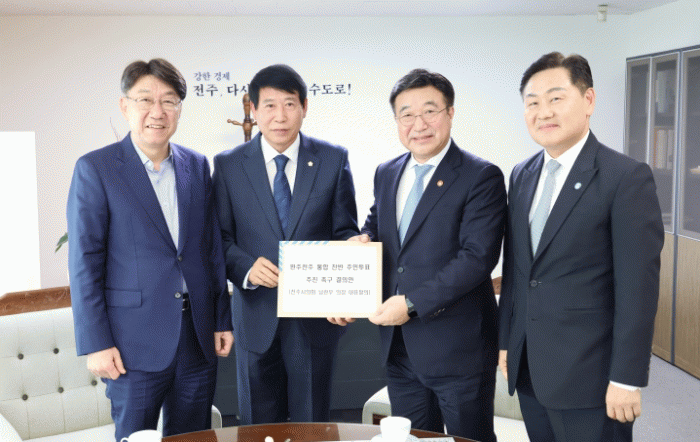 ³² ÀÇÀåÀº ´ëÇѹα¹»çȸÀû°æÁ¦¹Ú¶÷ȸ Âü¼®À» À§ÇØ À̳¯ ÀüÁÖ¸¦ ¹æ¹®ÇÑ À± Àå°ü¿¡°Ô °áÀǾÈÀ» Àü´ÞÇÏ¸ç ¡°¿ÏÁÖ?ÀüÁÖ ÅëÇÕÀº ÇàÁ¤ È¿À²¼º Á¦°í¸¦ ³Ñ¾î, ÀüºÏÀÇ ¼ºÀå °ÅÁ¡À» ¿Ï¼ºÇϱâ À§ÇÑ ½Ã´ëÀû °úÁ¦¡±¶ó¸ç ¡°Á¤ºÎ°¡ ¾ç Áö¿ªÀÇ ÅëÇÕÀ» À§ÇØ ÁÖ¹ÎÅõÇ¥¸¦ ÇÒ ¼ö ÀÖµµ·Ï Àû±ØÀû Áö¿ø°ú Çù·Â¿¡ ³ª¼´Þ¶ó¡±°í ¿äûÇß´Ù.