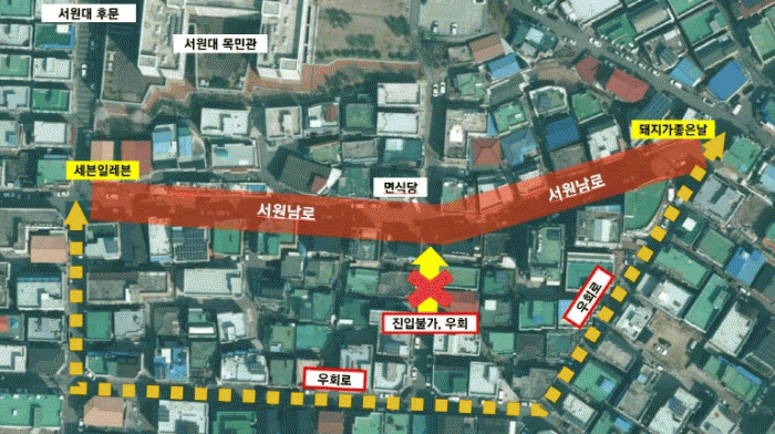 ÅëÁ¦ ±¸°£Àº ¼¿ø³²·Î(¼¼ºìÀÏ·¹ºì ¼¿ø´ëÁ¡~µÅÁö°¡ÁÁÀº³¯) 230m ±¸°£À̸ç, ÃàÁ¦ ´çÀÏÀÎ 31ÀÏ ¿ÀÀü 9½ÃºÎÅÍ ¿ÀÈÄ 10½Ã±îÁö ÀÚ°¡¿ë¡¤¿ÀÅä¹ÙÀÌ¡¤Àüµ¿Å±º¸µå µîÀ» Æ÷ÇÔÇÑ ¸ðµç Â÷·®ÀÇ ÅëÇàÀÌ ±ÝÁöµÈ´Ù.