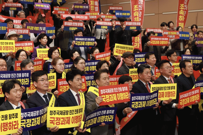 À¯Ã¶¿õ ûÁÖ°øÇ× ¹Î°üÁ¤ °øµ¿À§¿øÀåÀº ¡°ÇàÁ¤¼öµµÀÇ ¿Ï¼º°ú ûÁÖ°øÇ×ÀÇ ¹Î°£ Àü¿ë ȰÁÖ·Î °Ç¼³ ¹× Ȱ¼ºÈ´Â ÃæÃ»±ÇÀÇ ¿À·£ ¿°¿øÀ̸ç, Áö¿ª¹ßÀü°ú ±¹°¡ ±ÕÇü¹ßÀüÀ» À§Çؼ´Â Á¤ºÎ¿¡¼ ¾à¼ÓÇÑ ±¹Á¤°úÁ¦¸¦ ¹Ýµå½Ã ÀÌÇàÇØ¾ß¸¸ ÇÑ´Ù¡±°í ¸»Çß´Ù. ¶ÇÇÑ, ¡°Á¤ºÎ¿¡¼ °áÁ¤ÇÑ ±¹Á¤°úÁ¦°¡ ¹Ýµå½Ã ÀÌÇàµÉ ¼ö ÀÖµµ·Ï ûÁÖ°øÇ× ¹Î°üÁ¤ °øµ¿À§¿øÈ¸°¡ ¼±µµÇϰڴ١±°í ÀÇÁö¸¦ ´ÙÁ³´Ù.
