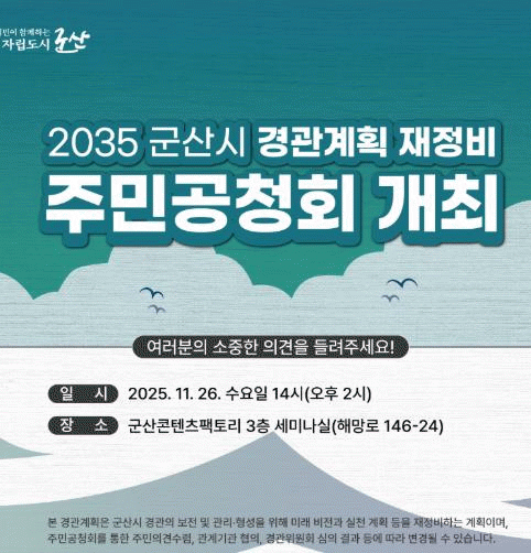 À̹ø °øÃ»È¸´Â ±º»ê½Ã °æ°üÀÇ Ã¼°èÀû °ü¸®¿Í º¸ÀüÀ» À§ÇÑ ÁßÀå±â °èȹÀ» ¼ö¸³Çϱâ À§ÇØ ¸¶·ÃµÈ ÀÚ¸®·Î, ½Ã¹Î°ú Àü¹®°¡ÀÇ ´Ù¾çÇÑ ÀǰßÀ» Á÷Á¢ ûÃëÇϰí ÇâÈÄ °æ°ü Á¤Ã¥¿¡ ¹Ý¿µÇϱâ À§ÇÑ ¸ñÀûÀ» °¡Áö°í ÀÖ´Ù.