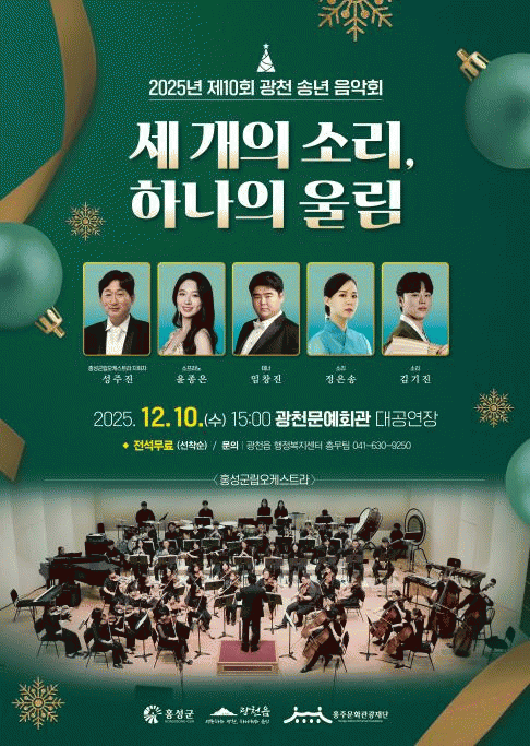 À̹ø ¼Û³âÀ½¾Çȸ´Â ´Ü¼øÇÑ °ø¿¬À» ³Ñ¾î, Áö¿ª Ãâ½Å ¿¹¼ú°¡µé°ú È«¼º±º ´ëÇ¥ ¿¹¼ú ´Üü°¡ ÇÔ²² ²Ù¹Ì´Â ÈÇÕÀÇ ÀåÀ̶ó´Â Á¡¿¡¼ ´õ¿í Àǹ̰¡ ±í´Ù. ÁÖ¿ä Ã⿬ÁøÀ¸·Î´Â Áö¿ª ¹®È ¹ßÀü¿¡ Çå½ÅÇϰí Á¤Åë Ŭ·¡½ÄºÎÅÍ ¼¼¹Ì Ŭ·¡½Ä, OST±îÁö Æø³ÐÀº ·¹ÆÛÅ丮¸¦ ÀÚ¶ûÇÏ´Â È«¼º±º¸³¿ÀÄɽºÆ®¶ó°¡ Ã⿬ÇÏ¿© ¿õÀåÇÏ°í ¼¶¼¼ÇÑ ¿¬ÁÖ¸¦ ¼±º¸ÀÏ ¿¹Á¤ÀÌ´Ù.