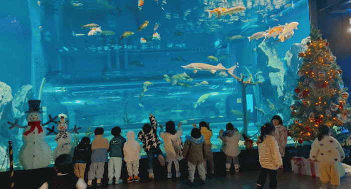 ÃæºÏ¾ÆÄí¾Æ¸®¿òÀÇ ÁÖ¿ä Àü½Ã °ø°£ÀÎ ¸ÞÀÎ ¼öÁ¶ ¾Õ¿¡´Â Å©¸®½º¸¶½ºÆ®¸®¿Í ´«»ç¶÷ Àå½ÄÀÌ ¼³Ä¡µÇ¾î °Ü¿ïöÀÇ µû¶æÇϰí ȯ»óÀûÀÎ ºÐÀ§±â¸¦ ÇÑÃþ ´õÇϰí ÀÖ´Ù. ¿©±â¿¡ ¸ÞÀÎ ¼öÁ¶ ¼ÓÀ» À¯¿µÇϴ ö°©»ó¾î, ¹«ÅÂÀå¾î, ºñ´ÜÀ×¾î µî ´Ù¾çÇÑ ¹Î¹°°í±âÀÇ ¸ð½ÀÀÌ ¾î¿ì·¯Áö¸ç, ¡®¹°¼Ó¿¡¼ Áñ±â´Â Å©¸®½º¸¶½º¡¯ Æ÷ÅäÁ¸ÀÌ ¿Ï¼ºµÈ´Ù.