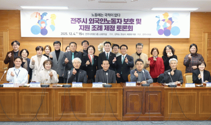 ÀüÁÖ½ÃÀÇȸ´Â À̳¯ ³íÀÇµÈ ÀǰßÀ» ¹ÙÅÁÀ¸·Î ¡®ÀüÁֽà ¿Ü±¹Àγ뵿ÀÚ º¸È£ ¹× Áö¿ø Á¶·Ê(°¡Äª)¡¯ Á¦Á¤À» ±¸Ã¼ÈÇØ ³ª°¥ °èȹÀÌ´Ù.