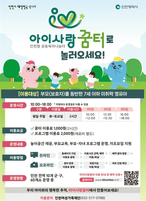 ²ÞÅÍ´Â 7¼¼ ÀÌÇÏ ¹ÌÃëÇÐ ¿µÀ¯¾Æ¿Í º¸È£ÀÚ°¡ ÇÔ²² ³îÀÌ¿Í Ã¼ÇèÀ» Áñ±æ ¼ö ÀÖ´Â °ø°£À¸·Î, ¸ÅÁÖ È¿äÀϺÎÅÍ Åä¿äÀÏ(¿ÀÀü 10½Ã~¿ÀÈÄ 6½Ã)±îÁö ÃÑ 3°³ ŸÀÓ(10~12½Ã, 13:30~15:30, 16:00~18:00 °¢ 2½Ã°£)À¸·Î ¿î¿µµÇ¸ç °¡Á· ´ÜÀ§ ¹æ¹®°´¿¡°Ô Å« È£ÀÀÀ» ¾ò°í ÀÖ´Ù.