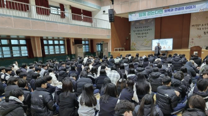 À̳¯ °¿¬¿¡´Â '¿ì¸®°¡ ¸¸³ û¼Ò³â'ÀÇ ÀúÀÚÀÎ ÀüÁ¾¼ö À¯½ºÆ®·Î¿ì ´ëÇ¥¸¦ ÃʺùÇÏ¿© ¡°ÇÔ²² °È´Â´Ù¸é - ȸº¹°ú ¿¬°áÀÇ À̾߱⡱¸¦ ÁÖÁ¦·Î 2~4±³½Ã¿¡ °ÉÃÄ Àü°îÁßÇб³ 1~3Çгâ Àü±³»ýÀ» ´ë»óÀ¸·Î ½Ç½ÃÇß´Ù. ¡ãÄ£±¸µé°úÀÇ °ü°è ¼Ó¿¡¼ °Þ´Â °¥µî°ú °¨Á¤ ÀÌÇØÇÏ°í °ü°è ¸Î±â ¡ã¾î·Á¿òÀÌ ÀÖÀ» ¶§ È¥ÀÚ °ßµðÁö ¾Ê°í µµ¿òÀ» ¿äûÇÏ´Â ¿ë±âÀÇ Á߿伺 ¡ã³»°¡ µè°í ½ÍÀº ¸»°ú ³»°¡ Ä£±¸¿¡°Ô ÇØÁÙ ¼ö ÀÖ´Â ¸» ½áº¸±â µîÀ» Áß½ÉÀ¸·Î ÁøÇàµÆ´Ù.