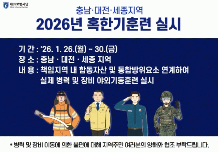 ¶ÇÇÑ, ±Þº¯ÇÏ´Â ¾Èº¸ À§Çù ¹× »óȲÀ» ¹Ý¿µÇÑ °¡¿îµ¥, Ãæ³²¡¤´ëÀü¡¤¼¼Á¾ Áö¿ª À§±â ÃÊ·¡ ½Ã Áï°¢ÀûÀÎ ÅëÇÕ ¹æÀ§ ÀÛÀüÀ» ¼öÇàÇÒ ¼ö ÀÖµµ·Ï Àü ºÎ´ë°¡ ½ÇÁ¦ ¾ß¿Ü ±âµ¿ ÈÆ·ÃÀ» º´ÇàÇÏ°Ô µÈ´Ù.