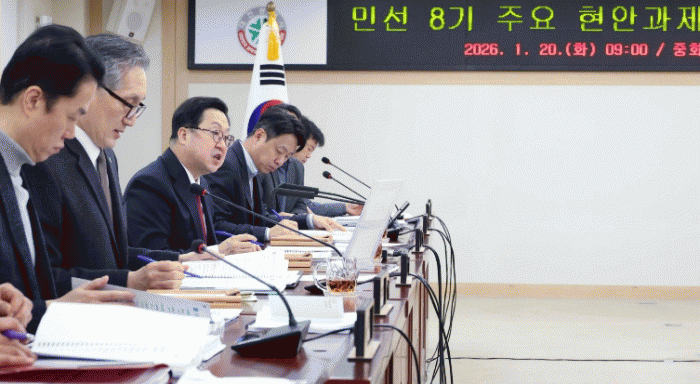 º¸°í¿¡¼´Â 16°³ ½Ç.±¹°ú 18°³ °ø»ç.°ø´Ü, ÃâÀÚ.Ã⿬±â°üÀÌ Âü¼®ÇÏ¿© ½Ç.±¹º°·Î ÁÖ¿ä Çö¾È°úÁ¦¸¦ º¸°íÇß´Ù. ƯÈ÷, ¹Î¼± 8±â °ø¾à ¹× 100´ë ÇٽɰúÁ¦¿¡ ´ëÇØ¼´Â ´ëºÎºÐÀÇ °úÁ¦°¡ ¼øÁ¶·Ó°Ô ÃßÁø ÁßÀ̳ª, ÇàÁ¤ÀýÂ÷³ª ¿¹»êÈ®º¸ ¹®Á¦·Î ½Ã±â°¡ Á¶Á¤µÇ´Â 11°³ °úÁ¦¿¡ ´ëÇØ¼ ÁßÁ¡ Á¡°ËÇß´Ù.