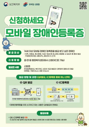 ICĨÀÌ Å¾ÀçµÈ ½Å±Ô Àå¾ÖÀεî·ÏÁõ ¼ÒÁöÀÚ´Â ¡®´ëÇѹα¹ ¸ð¹ÙÀÏ ½ÅºÐÁõ¡¯ ¾ÖÇø®ÄÉÀ̼ÇÀ» ÅëÇØ ½º¸¶Æ®Æù ÅÂ±ë ¹æ½ÄÀ¸·Î °£ÆíÇÏ°Ô µî·ÏÇÒ ¼ö ÀÖÀ¸³ª, ±âÁ¸ ½Ç¹° Àå¾ÖÀεî·ÏÁõ ¼ÒÁöÀÚ´Â °¡±î¿î À¾¡¤¸é¡¤µ¿ ÇàÁ¤º¹Áö¼¾Å͸¦ ¹æ¹®ÇØ Á¤º¸ÀνĺÎÈ£(QRÄÚµå) ÀÎÁõ ÀýÂ÷¸¦ °ÅÃÄ¾ß ¹ß±Þ¹ÞÀ» ¼ö ÀÖ´Ù.