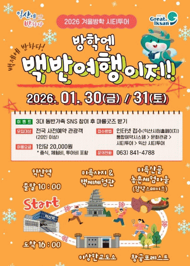 Àͻ꿪À» Ãâ¹ßÇØ ¡â¹Ì¸¤»çÁö¡¤¹éÁ¦Ã¼Çè°ü ¡â¹Ì¸¤»ê°ñ ³óÃÌüÇ踶À»(°í±¸¸¶ ÇÔ¹Ú½ºÅ×ÀÌÅ© üÇè) ¡âÀÌ»óÇѱ³µµ¼Ò(±³µµ¼Ò ¼¼Æ®Àå) ¡â¿Õ±ÃÆ÷·¹½ºÆ® µîÀ» ¹æ¹®ÇÏ´Â ÀÏÁ¤À¸·Î ¿î¿µµÈ´Ù.