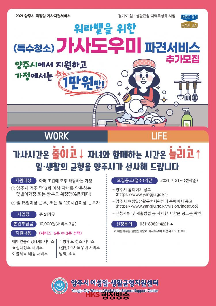 ½Ã °ü°èÀÚ´Â ¡°±Ù·ÎȰµ¿°ú ÀÚ³à¾çÀ°ÀÇ º´ÇàÀ¸·Î °¡»ç Á¤¸®¿¡ ¾î·Á¿òÀ» °Þ´Â Á÷À帾¡¤´ëµð¸¦ À§ÇØ ¼ºñ½º ÀÌ¿ëÀÚ¸¦ Ãß°¡·Î ¸ðÁýÇÑ´Ù¡±¸ç ¡°À̹ø ¼ºñ½º°¡ ÄèÀûÇÑ °¡Á¤È¯°æ Á¶¼º°ú »îÀÇ Áú Çâ»ó¿¡ µµ¿òÀÌ µÇ±æ ¹Ù¶õ´Ù¡±°í ¸»Çß´Ù.