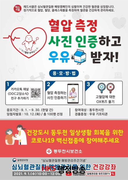 °ü³» ¿îÇà¹ö½º 11´ë¿¡ Ç÷¾Ð, Ç÷´ç, ÄÝ·¹½ºÅ×·Ñ Á¤»ó¼öÄ¡ ±¤°í¹°À» °Ô½ÃÇÏ¿© Ç÷°ü ¼ýÀÚÀÇ Á߿伺¿¡ ´ëÇÏ¿© È«º¸Çϰí, Á¤±âÀûÀÎ Ç÷°ü ¼öÄ¡ ÃøÁ¤À» Àå·ÁÇϱâ À§ÇØ ¡°Ç÷¾Ð ÃøÁ¤»çÁø ÀÎÁõÇÏ°í ¿ìÀ¯¹ÞÀÚ!¡± À̺¥Æ®¸¦ °³ÃÖÇÑ´Ù. ÇØ´ç À̺¥Æ®´Â īī¿ÀÅåä³Î