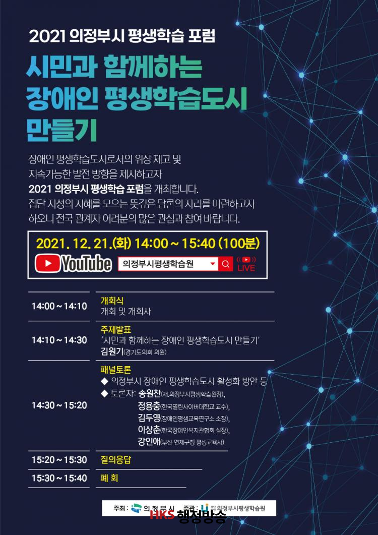 À̹ø Æ÷·³Àº¡®½Ã¹Î°ú ÇÔ²²ÇÏ´Â Àå¾ÖÀÎ Æò»ýÇнÀµµ½Ã ¸¸µé±â¡¯¶ó´Â ÁÖÁ¦ ¹ßÇ¥¸¦ ½ÃÀÛÀ¸·Î Àå¾ÖÀÎ Æò»ýÇнÀµµ½Ã Ȱ¼ºÈ ¹× ÅëÇÕ ±³À° ¹æ¾È¿¡ ´ëÇÑ °¢ ºÐ¾ß Àü¹®°¡µéÀÇ Åä·ÐÀ¸·Î À̾îÁú ¿¹Á¤ÀÌ´Ù.