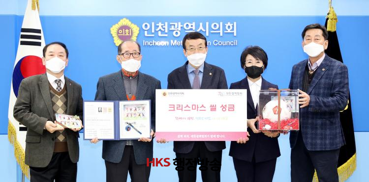 ÀÎõ½ÃÀÇȸ´Â 9ÀÏ ÀÇÀå Á¢°ß½Ç¿¡¼ Çã½Ä ÀÇÀåÀ» ºñ·ÔÇØ À̺À¶ô ºÎÀÇÀå, ¹ÚÆÇ¼ø ÀÇ¿ø, ´ëÇѰáÇÙÇùȸ ÀÎõÁöºÎ °ü°èÀÚ µîÀÌ Âü¼®ÇÑ °¡¿îµ¥ °áÇÙ ÅðÄ¡»ç¾÷ µ¿ÂüÀ» À§ÇÑ Å©¸®½º¸¶½º ¾Á ¼º±Ý 100¸¸ ¿øÀ» ´ëÇѰáÇÙÇùȸ ÀÎõ½ÃÁöºÎ(ȸÀå ±è½Ç)¿¡ Àü´ÞÇß´Ù.