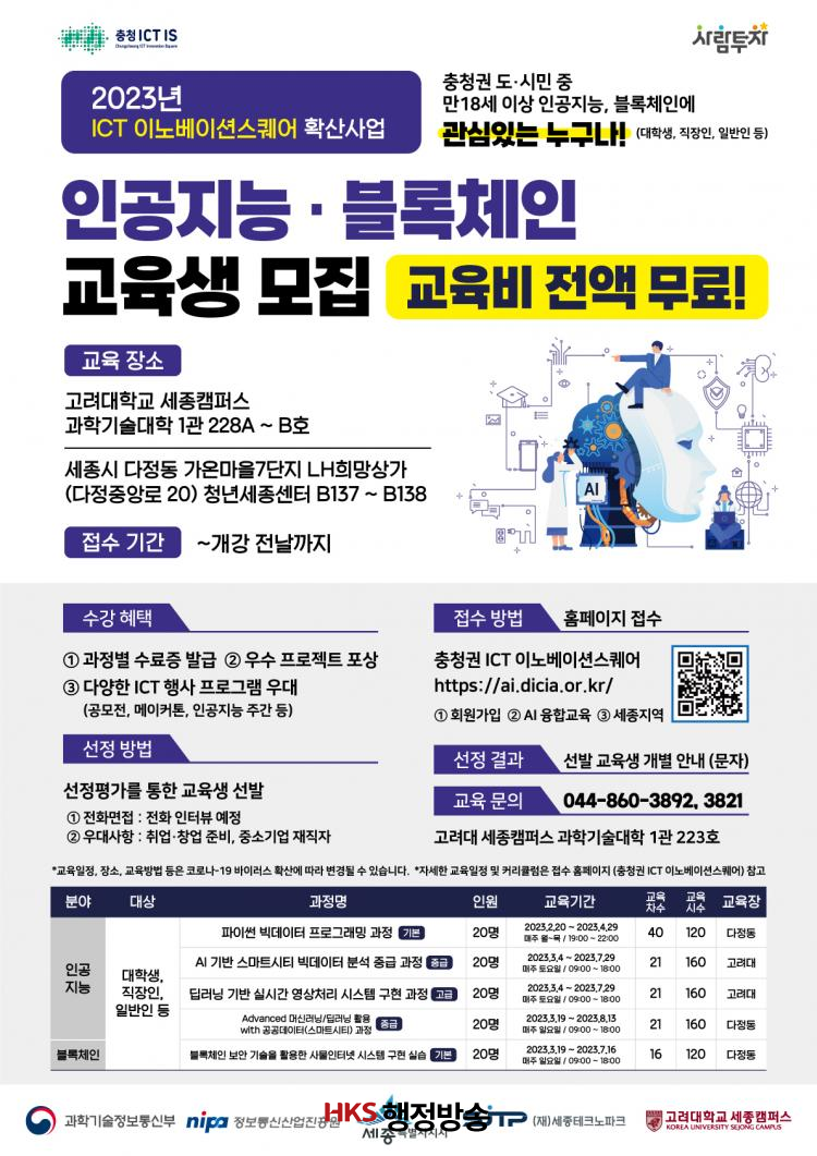 ±³À°Àå¼Ò´Â °í·Á´ë ¼¼Á¾Ä·ÆÛ½º °úÇбâ¼ú´ëÇÐ 1°ü°ú ´ÙÁ¤µ¿ û³â¼¼Á¾ ¼¼Á¾ICTÀ̳뺣À̼ǽºÄù¾î(´ÙÁ¤Áß¾Ó·Î 20)À̸ç, ±³À°°úÁ¤Àº ÀΰøÁö´É 7°³¹Ý, ºí·ÏüÀÎ 1°³¹Ý, µ¥ÀÌÅÍ 2°³¹Ý, »ç¹°ÀÎÅͳÝ(IoT) °úÁ¤ 1°³¹ÝÀ¸·Î, °úÁ¤º° 120¢¦160½Ã°£ÀÌ´Ù.