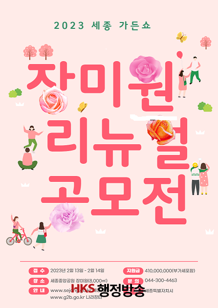 ÇÑÆí ½Ã´Â ¿À´Â 5¿ù 18ÀϺÎÅÍ 21ÀϱîÁö ¼¼Á¾Áß¾Ó°ø¿ø Àå¹Ì¿ø¿¡¼ ¡®2023 ¼¼Á¾ °¡µç¼î¡¯¸¦ °³ÃÖÇÒ ¿¹Á¤À¸·Î, Áö¿ª Á¶°æ¼ö¡¤ÈÈÑ ³ó°¡µéÀÌ Âü¿©ÇÏ´Â Á¤¿øÀåÅÍ, °¡µå´× üÇèÇÁ·Î±×·¥ µîÀ» ÁøÇàÇÑ´Ù.