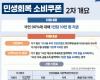 [HKSÇàÁ¤¹æ¼Û] ÀÎõ ¼±¸´Â Áö³ 22ÀÏ ½ÃÀÛµÈ ¹Î»ýȸº¹ ¼ÒºñÄíÆù 2Â÷ Á¢¼ö °á°ú, ù³¯ Áö±Þ·üÀÌ 13.3%¸¦ ½ÃÀÛÀ¸·Î ÀÌÆ²Â°´Â 28.17%·Î ÀÎõ½Ã 10°³ ±º¡¤±¸ Áß °¡Àå ³ôÀº ¼öÁØÀ» º¸¿´´Ù°í 24ÀÏ ¹àÇû´Ù. ±¸¿¡ µû¸£¸é, Áö³ 23ÀÏ È¿äÀÏ Áý°èµÈ ¹Î»ýȸº¹ ¼ÒºñÄíÆù ¼±¸ Áö±ÞÀÚ ¼ö´Â 16¸¸ 8,158¸íÀ̸ç Áö±Þ¾×Àº ÃÑ 168¾ï 1580¸¸ ¿øÀÌ´Ù. ÀÌ Áß ½Å¿ë¡¦