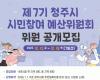 [HKSÇàÁ¤¹æ¼Û]ûÁֽô ½Ã¹ÎÂü¿©¿¹»êÁ¦ÀÇ È¿À²ÀûÀÎ ¿î¿µ°ú Ȱ¼ºÈ¸¦ À§ÇØ ¿À´Â 18ÀϱîÁö Á¦7±â ûÁֽà ½Ã¹ÎÂü¿©¿¹»êÀ§¿ø 14¸íÀ» °ø°³¸ðÁýÇÑ´Ù. ½Ã¹ÎÂü¿©¿¹»êÀ§¿øÈ¸´Â ¿¹»ê¿¡ ´ëÇÑ ½Ã¹ÎµéÀÇ ÀǰßÀ» ¼ö·Å¡¤Áý¾àÇÏ°í ¼ö¸³ °úÁ¤¿¡ Âü¿©ÇØ ¿¹»ê¾È¿¡ ´ëÇÑ ÀǰßÀ» Á¦ÃâÇÏ´Â ±â´ÉÀ» ¼öÇàÇÑ´Ù. ½Ã¹ÎÀÌ Á¦¾ÈÇÑ »ç¾÷¿¡ ´ëÇÑ ¿ì¼±¼øÀ§ °áÁ¤, ÃßÁø °á°ú Á¡¡¦