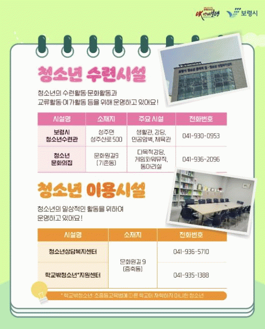 [HKSÇàÁ¤¹æ¼Û]º¸·É½Ã´Â û¼Ò³âµéÀÇ °Ç°ÇÑ ¼ºÀå°ú û³âµéÀÇ Ã¢¾÷ ¹× Ȱµ¿ Áö¿øÀ» À§ÇØ Ã»¼Ò³â ½Ã¼³ 2°³¼Ò, û³â ½Ã¼³ 2°³¼Ò µî ÃÑ 4°³¼ÒÀÇ Àü¿ë ½Ã¼³À» ¿î¿µÇϰí ÀÖ´Ù.