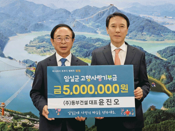 [HKSÇàÁ¤¹æ¼Û]¢ßµ¿ºÎ°Ç¼³ À±Áø¿À ´ëÇ¥°¡ Áö³ 6ÀÏ °íÇâ»ç¶û±âºÎ±Ý ÃÖ°í ±Ý¾×ÀÎ 5¹é¸¸¿øÀ» ÀӽDZº¿¡ ±âŹÇß´Ù.