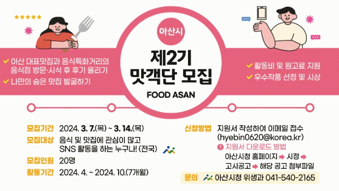 [HKSÇàÁ¤¹æ¼Û]¾Æ»ê½Ã´Â ¿À´Â 3¿ù 7ÀϺÎÅÍ 14ÀϱîÁö ½Ã¹Î°ú °ü±¤°´¿¡°Ô ¾Æ»êÀÇ ¸ÀÁýÀ» ¾Ë¸®°í À½½Ä¹®È¸¦ È«º¸ÇÏ´Â ¡®Á¦2±â ¾Æ»ê½Ã ¸À°´´Ü¡¯À» ¸ðÁýÇÑ´Ù.