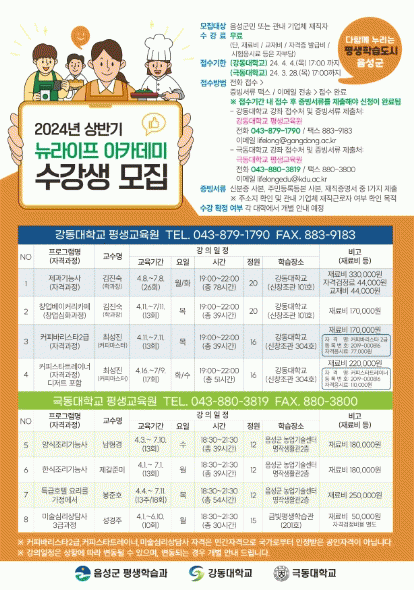 [ÃæÃ»±Ç] À½¼º±º, ´ëÇÐ ¿¬°è Æò»ýÇнÀ '´º¶óÀÌÇÁ ¾ÆÄ«µ¥¹Ì' ¼ö°»ý ¸ðÁý |2024. 03.06