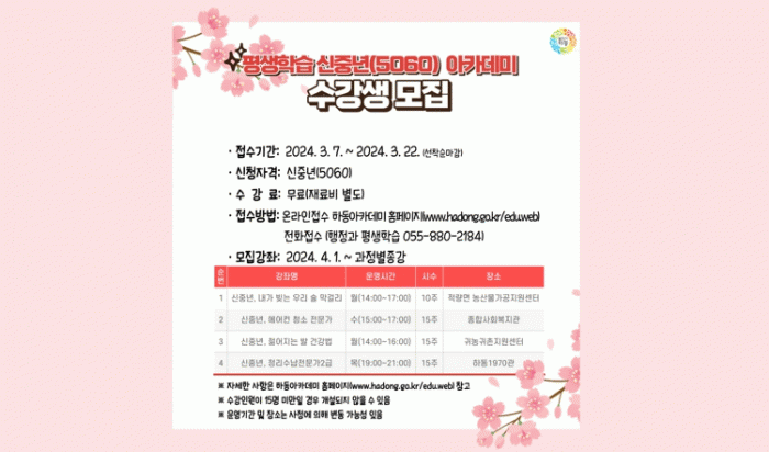 [¿µ³²±Ç] Çϵ¿±º Æò»ýÇнÀ ½ÅÁß³â(5060) ¾ÆÄ«µ¥¹Ì ¼ö°»ý ¸ðÁý |2024. 03.04