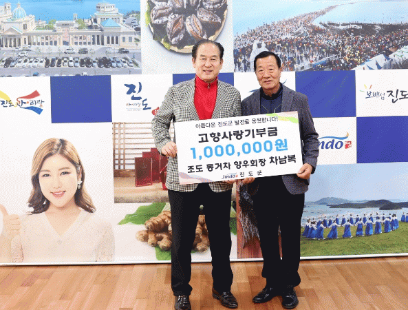 [HKSÇàÁ¤¹æ¼Û]Á¶µµ¸é µ¿°ÅÂ÷ Â÷³²º¹ Çâ¿ìȸÀåÀÌ Áøµµ±º¿¡ °íÇâ»ç¶û±âºÎ±Ý 100¸¸¿øÀ» ±âŹÇß´Ù.