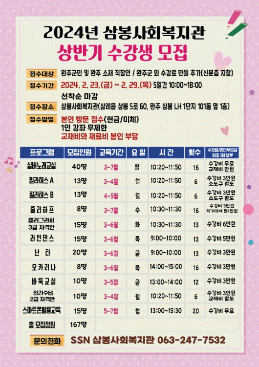 [HKSÇàÁ¤¹æ¼Û]LH»ïºÀ»çȸº¹Áö°üÀÌ ¿ÏÁÖ±º¹ÎÀÇ Ãë¾÷ ¿ª·® °È¿Í °Ç°°ü¸® ¹× ¿©°¡¼±¿ëÀ» À§ÇØ 2024³â »ó¹Ý±â ÇÁ·Î±×·¥ ¼ö°»ýÀ» ¸ðÁýÇÑ´Ù.