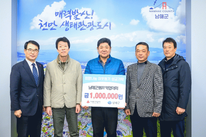 Áö³ 21ÀÏ ³²Çرº ÆßÇÁÄ«ÇùÀÇȸÀÇ ¹ÚÁ¤È¯ ȸÀå°ú ȸ¿øµéÀÌ ±º¼ö½ÇÀ» ã¾Æ ¼º±Ý 100¸¸¿øÀ» ±âŹÇß´Ù. ¹ÚÁ¤È¯ ȸ¡¦ |