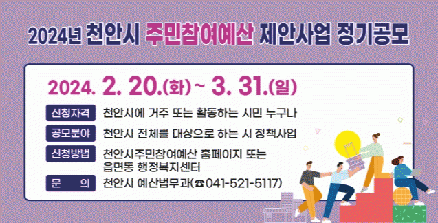 [ÃæÃ»±Ç] õ¾È½Ã, 3¿ù31ÀϱîÁö ÁÖ¹ÎÂü¿©¿¹»ê Á¦¾È»ç¾÷ °ø¸ð |2024. 02.21