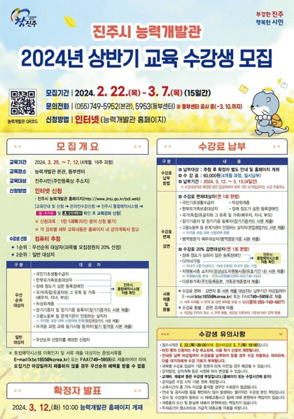 [¿µ³²±Ç] ÁøÁֽà ´É·Â°³¹ß°ü ¡®2024³â »ó¹Ý±â Á¤±â±³À°¡¯ ¼ö°»ý ¸ðÁý |2024. 02.19
