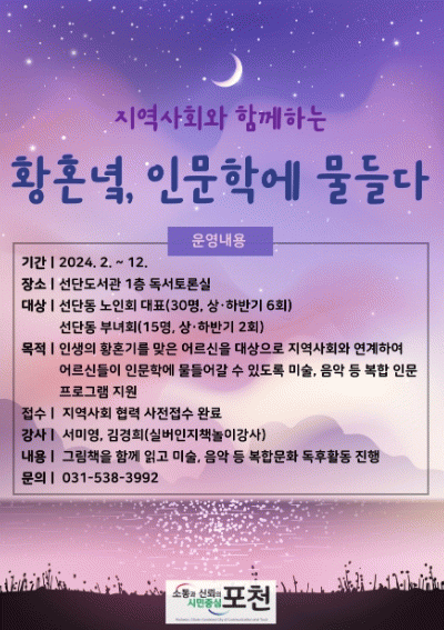 [HKSÇàÁ¤¹æ¼Û]Æ÷õ½Ã´Â Áö¿ª»çȸ¿Í Çù·ÂÇØ ±âȹÇÑ ¡®È²È¥³è, Àι®Çп¡ ¹°µé´Ù¡¯ ½Ã´Ï¾î Àι®ÇÐ ÇÁ·Î±×·¥À» ¼±´Üµµ¼°ü¿¡¼ ¼±º¸Àδٰí 19ÀÏ ¹àÇû´Ù.