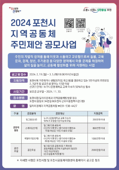 [¼öµµ±Ç] Æ÷õ½Ã, 2024³â Áö¿ª°øµ¿Ã¼ ÁÖ¹ÎÁ¦¾È °ø¸ð»ç¾÷ ÃßÁø |2024. 02.19