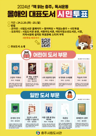 [ÃæÃ»±Ç] 'Ã¥ ÀÐ´Â ÃæÁÖ' ¿ÃÇØÀÇ ´ëÇ¥ µµ¼ ½Ã¹Î ÅõÇ¥ ½Ç½Ã |2024. 02.19