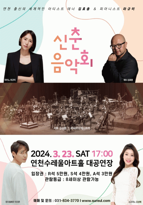 [HKSÇàÁ¤¹æ¼Û]¿¬Ãµ¼ö·¹¿ï¾ÆÆ®È¦Àº ¿À´Â 3¿ù 23ÀÏ ¿ÀÈÄ 5½Ã ´ë°ø¿¬Àå¿¡¼ ¡®½ÅÃáÀ½¾Çȸ¡¯¸¦ °³ÃÖÇÑ´Ù. À̹ø °ø¿¬Àº ÃÖ±Ù Áö¿ª ¿¹¼ú°¡¿¡ °ü½ÉÀÌ °íÁ¶µÈ ºÐÀ§±â¸¦ ÀÌ¾î ¿¬Ãµ Ãâ½Å Ŭ·¡½Ä ¿¬ÁÖÀÚ¸¦ ÃÊûÇÏ¿© ±âȹµÆ´Ù.