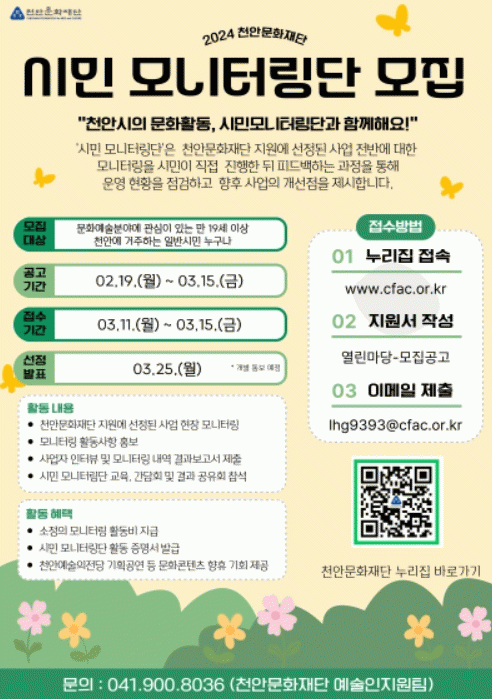 [ÃæÃ»±Ç] õ¾È¹®ÈÀç´Ü, Áö¿ø»ç¾÷ ½Ã¹Î ¸ð´ÏÅ͸µ´Ü ¸ðÁý |2024. 02.16