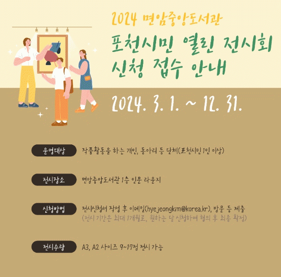 [HKSÇàÁ¤¹æ¼Û]Æ÷õ½Ã´Â ¸é¾ÏÁß¾Óµµ¼°ü 1Ãþ ¶ó¿îÁö¿¡ ½Ã¹ÎµéÀÇ ÀÛǰÀ» Àü½ÃÇÒ ¼ö ÀÖ´Â °ø°£À» »õ·Ó°Ô Á¶¼ºÇÏ°í ¿À´Â 3¿ùºÎÅÍ ¡®Æ÷õ½Ã¹Î ¿¸° Àü½Ãȸ¡¯¸¦ °³ÃÖÇÒ ¿¹Á¤ÀÌ´Ù. ÀÌ¿¡ ½Ã´Â Àü½Ã ÀÛǰÀ» ¸ðÁýÇÑ´Ù.