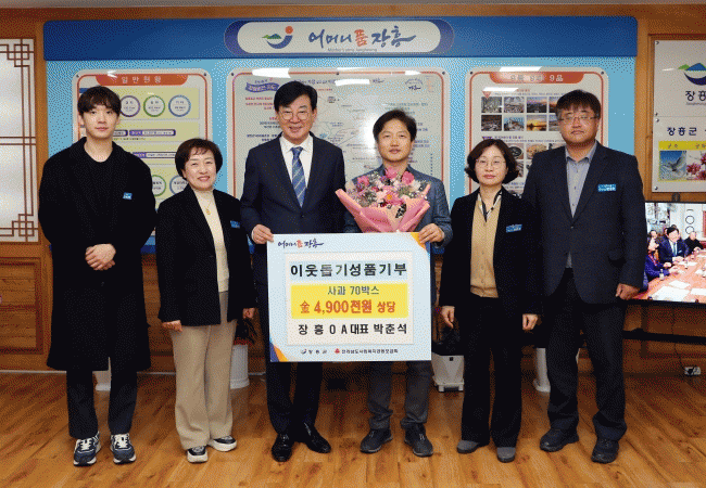 [HKSÇàÁ¤¹æ¼Û]¹ÚÃá¼® ÀåÈïOA ´ëÇ¥°¡ ¼³ ¸íÀýÀ» ¸Â¾Æ °ü³» Àú¼ÒµæÃë¾à°èÃþ ¾î¸£½ÅµéÀ» À§ÇØ 490¸¸¿ø »ó´çÀÇ »ç°ú 70¹Ú½º¸¦ ÀåÈﱺ¿¡ ±âºÎÇß´Ù. ¹Ú ´ëÇ¥´Â ÇöÀç ÀåÈﱺ »ó³ìȸ »ç¹«±¹ÀåÀ¸·Îµµ Ȱµ¿ÇÏ¸ç °ü³» Ãë¾à°èÃþÀÇ Áý¼ö¸®, ¼öº¯±¸¿ª ¡¦