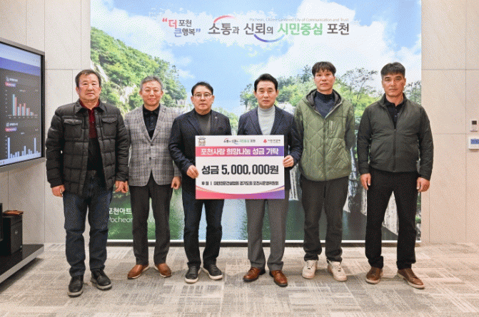 [HKSÇàÁ¤¹æ¼Û]´ëÇÑÀü¹®°Ç¼³Çùȸ °æ±âµµÈ¸ Æ÷õ½Ã¿î¿µÀ§¿øÈ¸´Â Áö³ 13ÀÏ ÀÌ¿ôÀ» µ½±â À§ÇÑ ¼º±Ý 500¸¸ ¿øÀ» Æ÷õ½Ã¿¡ ±âŹÇß´Ù. À̹ø ±âʱÝÀº ¢ß¿ë¿î°Ç¼³ ¹Ú¸í¼® ȸÀå, (ÁÖ)¹Ý¼®°Ç¼³ ±Ç¿ë±æ ¼ö¼®ºÎȸÀå, °»ê¾ÈÀü(ÁÖ) Àå¸í¼® ºÎȸÀå, ¼¡¦