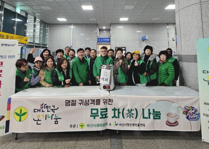 [HKSÇàÁ¤¹æ¼Û]¾Æ»ê½Ã »õ¸¶À»È¸´Â ¼³ ¿¬ÈÞ¸¦ ¾ÕµÐ 8ÀÏ ¾Æ»ê½Ãû³â»õ¸¶À»¿¬´ë(ȸÀå º¯Çö¼÷)¿Í ÇÔ²² ±Í¼º°´µéÀ» À§ÇÑ ¹«·á Â÷ ³ª´® ºÀ»ç¸¦ ÁøÇàÇß´Ù. À̳¯ Çà»ç¿¡´Â À¾¸éµ¿ ÇùÀÇȸÀå ¹× ºÎ³àȸÀå 30¿© ¸í°ú ¾Æ»ê½Ãû³â»õ¸¶À»¿¬´ë 10¿© ¸íÀÌ¡¦