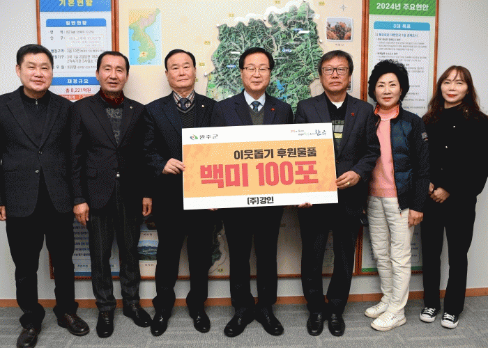 [HKSÇàÁ¤¹æ¼Û](ÁÖ)°ÀÎÀÌ ¿ÏÁÖ±º¿¡ 300¸¸ ¿ø »ó´çÀÇ ¹é¹Ì 10kg 100Æ÷¸¦ ±âŹÇß´Ù. (ÁÖ)°ÀÎÀº ¿ÏÁÖ±º ¼Ò¾ç¸é¿¡ À§Ä¡ÇÑ ¾÷ü·Î Åä¸ñ°ÇÃà°ø»ç¸¦ ÁÖ ¾÷Á¾À¸·Î ÇÏ´Â ±â¾÷ÀÌ´Ù. ¿ÏÁÖ±º¾ÖÇ⺻ºÎ ÀÌ»ç·Îµµ Ȱµ¿Çϰí ÀÖ´Â ½Å¿¬»ó ´ëÇ¥´Â Áö¿ª¡¦