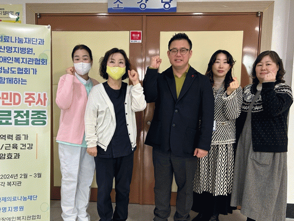 [HKSÇàÁ¤¹æ¼Û]¿¹»ê±ºÀå¾ÖÀÎÁ¾ÇÕº¹Áö°üÀº Áö³ 8ÀÏ ±¹Á¦ÀǷᳪ´®Àç´Ü°ú ¿¹»ê¸íÁöº´¿ø ÈÄ¿øÀ¸·Î º¹Áö°ü ÀÌ¿ëÀÎ 250¸í¿¡°Ô ºñŸ¹ÎD Áֻ縦 Á¢Á¾Áö¿øÇß´Ù. À̹ø ºñŸ¹ÎD ÁÖ»ç Á¢Á¾Àº »ç)±¹Á¦ÀǷᳪ´®Àç´Ü, ¿¹»ê¸íÁöº´¿ø, Ãæ³²Àå¾ÖÀκ¹Áö°üÇù¡¦