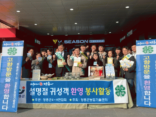 [HKSÇàÁ¤¹æ¼Û]ÀåÈﱺ4-H¿¬ÇÕȸ´Â Áö³ 8ÀÏ ³²Çذí¼Óµµ·Î Á¤³²ÁøÈÞ°Ô¼Ò¿¡¼ ±Í¼º°´ ȯ¿µ Çà»ç¸¦ °³ÃÖÇß´Ù°í ÀüÇß´Ù. À̳¯ ȯ¿µÇà»ç¿¡´Â 4-Hȸ¿ø ¹× ³ó¾÷±â¼ú¼¾ÅÍ °ü°è°ü µî 20¿©¸íÀÌ Âü¿©Çß´Ù. °íÇâÀ» ã´Â ±Í¼º°´¿¡´Â ÀåÈï¿¡¼ »ý»êµÈ ¡¦